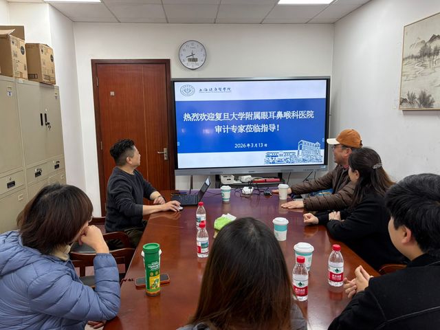 2026年3月13日,复旦大学附属眼耳鼻喉科医院审计处、财务处一行五人来校开展审计信息化管理工作调研。审计处负责人麦穗亮携部门全体人员接待来访嘉宾,并主持调研座谈会。